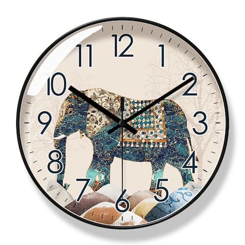 Material: Material da casca: plástico Material do espelho: vidro Material do mostrador: PVC Tamanho: 30 × 30 cm Peso: 0,98 kg incluindo embalagem. Movimento silencioso de quartzo: o recurso antiaderente garante um ambiente silencioso, perfeito para quartos, salas de estar ou escritórios. Design artístico de elefante: padrão de elefante exclusivo e elegante com detalhes intrincados, ideal para adicionar um toque de arte e estilo a qualquer espaço. Claros e fáceis de ler: números grandes e em negrito com ponteiros pretos para visibilidade clara e fácil leitura. Mostrador de PVC durável: feito com material de PVC resistente e leve, projetado para maior durabilidade e fácil montagem na parede. Decoração em estilo nórdico: O design simples e contemporâneo o torna um ótimo complemento para interiores modernos de estilo nórdico.