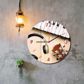 Relógio de parede decorativo estilo música 51 Chegaram os lindos relógios estilo música da new decor. Com eles as horas ficam muito mais divertidas, e o tempo vira um verdadeiro musical ao seu estilo. Compre para todos os ambientes, compre para dar de presente, pois a música é uma linguagem universal do amor