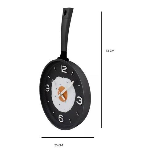 Relógio de Parede em Formato de Frigideira. Este relógio têm muitos detalhes, formato de frigideira super realista. Os ponteiros em formato de garfo e faca são diferencias. Ideal para a decoração da sua cozinha, é uma ótima opção para presentear. Marca: Não Informado Ean: 7899149941724