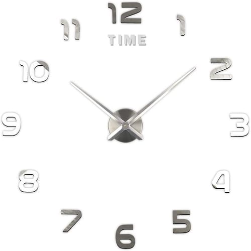 Relógio de Parede Decorativo 3D Sem Moldura para Decoração de Casa e Escritório Diâmetro: 80cm -Prata