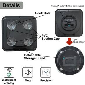 Descrição: O relógio de parede digital à prova d'água para banheiro tem ótimas propriedades resistentes à água que permitem que o relógio seja colocado em praticamente qualquer lugar da casa, especialmente no banheiro, banheiro ou área da cozinha. A moldura externa do pequeno relógio de parede é selada para combater a intrusão de umidade para que o vapor de água não danifique o sistema dentro do corpo do relógio. O design simples e moderno preto e cinza do relógio de parede é adequado para qualquer estilo de casa. O relógio de parede à prova d'água tem quatro ventosas e orifício de gancho na parte de trás para que o relógio possa ser pendurado como muitos outros relógios de parede comuns. No entanto, além desta opção de posicionamento convencional, um suporte vem com este relógio que também pode ser colocado na vertical em qualquer lugar que você desejar com facilidade. Resumindo, este relógio de parede moderno à prova d'água não é apenas um cronômetro perfeito, mas também uma obra de arte! Com certeza trará aura estética extra ao seu espaço, não importa onde você decida colocá-lo! Especificações: Cor: preto e cinza Material: ABS Tamanho: 15,7 x 15,7 x 6 cm Fonte de alimentação: Duas pilhas AAA (bateria não incluída) Peso: 300 g Atenção: 1. Bateria não incluída. 2. Configuração de horário: após a instalação da bateria, defina a hora e a data de acordo com as instruções de suporte. 3. Limpe a superfície de contato antes de usar a ventosa a vácuo para fixar o relógio de parede ao espelho do banheiro ou azulejos de parede, caso contrário, a ventosa não funcionará. (Limpe a ventosa com uma toalha molhada, para fazer a superfície da ventosa grudar em um pouco de água, o que pode aumentar a solidez da adsorção da ventosa.) 4. Devido ao ângulo de disparo e iluminação, a tela pode ter uma pequena diferença de cor do produto real. Incluído na embalagem: 1 relógio de parede digital à prova d'água - ?Aparência simples?Este é um relógio de parede digital à prova d'água pequeno e bonito. A capa preta torna o visual geral muito simples e elegante, mas elegante e refrescante. Portanto, o relógio de parede à prova d'água pode ser integrado perfeitamente ao ambiente doméstico, e é a melhor escolha para banheiro, sala de estar e cozinha, e pode ser colocado onde você quiser. - ?Operação silenciosa?O ponteiro do nosso pequeno relógio de parede à prova d'água adota movimento silencioso sem fazer nenhum ruído, para garantir melhor a qualidade do sono de você e do seu filho. - ?Excelente artesanato?O relógio de parede interno mede 15,7 cm, mas tem três usos diferentes. 1. Abra a capa traseira para obter o suporte do relógio de parede para colocar o relógio de parede na sua mesa de cabeceira ou na mesa de centro da sala de estar. 2. Há quatro ventosas a vácuo na parte de trás do relógio de parede à prova d'água, que podem ser fixadas ao espelho do banheiro, vidro ou azulejos de parede. 3. Há um orifício de gancho na parte superior do relógio de parede e pendure-o onde quiser pendurá-lo. - ?Tecnologia de resistência à água?Nosso relógio de parede à prova d'água para banheiro pode suportar vapor de água ou umidade, o que é perfeito para banheiro ou cozinha. - ?ampla variedade de aplicações?Nosso moderno relógio de parede digital à prova d'água é muito prático e é a primeira escolha para presentes, decoração, apreciação, presentes, lembranças, móveis domésticos, etc. Se você tiver alguma dúvida sobre este produto, , nós lhe daremos uma resposta dentro de 24 horas.