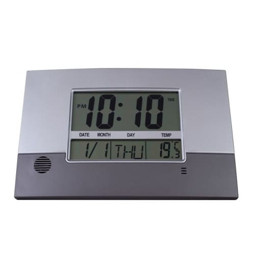 Relógio de Parede Digital HERWEG 6473-034 Estilo: Moderno, Código 03676-0318-73 Medidas: 19A X 28,8L X 2,6E cm Alarme com melodia musical Calendário em Inglês Relógio para parede e mesa Usa pilha AA Termômetro com duas escalas Formato das Horas AM PM Cores Disponíveis:Preto com Prata Metálico Base: plástico pintado Garantia de 1 ano Ean: 7897280346514