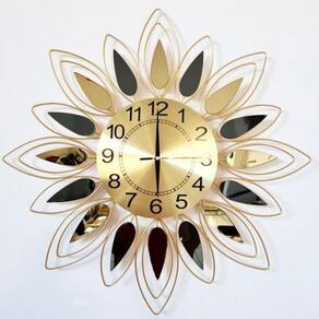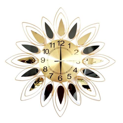 Relógio de parede dourado folhas espelhadas metal 60x60 Uma coleção luxuosa de relógios em metal dourado