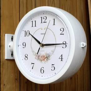 Relógio de Parede Dupla Face GD9836 Estilo Vintage Estação de Trem Decorativo Retrô Branco Yeet