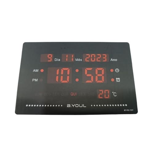Transforme seu espaço com o Relógio de Parede e Mesa Digital com Alarme, Data e Temperatura. Este elegante acessório de plástico oferece um design digital moderno que se adapta perfeitamente a qualquer ambiente, seja em casa ou no escritório. Sua tela também mostra a data e a temperatura, proporcionando funcionalidades úteis além da simples marcação do tempo.