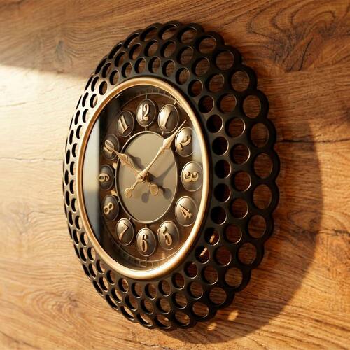 1x Relógio De Parede Vazado Cor Preto e Cobre De 50cm