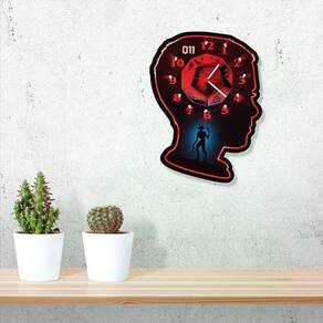 Com o Relógio de Parede Eleven - Stranger Things você não irá se atrasar nunca mais Ele tem o formato da Eleven, a personagem mais querida da Série Stranger Things, ou seja, para um fã da série que adora colecionar coisas incríveis, esse relógio é a melhor pedida O Relógio de Parede Eleven - Stranger Things também é uma ótima ideia de Presente Divertido e Criativo Especificações do Produto Dimensões: 23 cm x 31 cm Peso: 0,180 kg Cores: Branco com impressão digital. Material: Plástico Instruções de uso: Funcionamento através de 1 pilha AA Instruções de lavagem: Pano seco. Pilha AA não acompanha o produto Máquina silenciosa, não faz barulho de Tic-Tac.