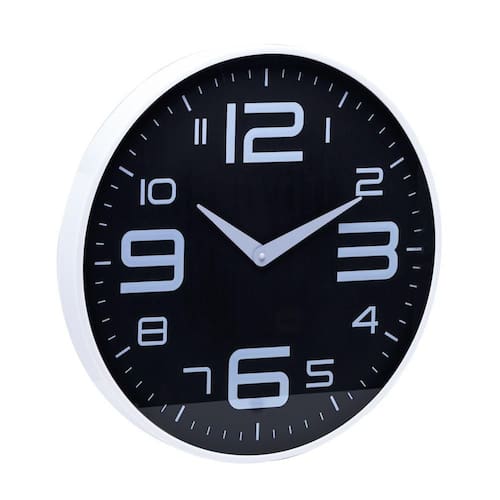 Relógio de Parede em Plástico Preto com Branco - Lyor