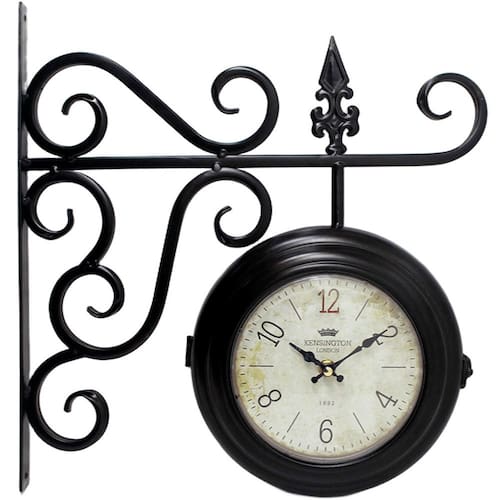 Relógio De Parede Europeu Dupla Face Estação Trem Em Metal Kensington -