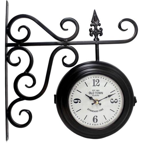 Relógio De Parede Europeu Dupla Face Estação Trem Em Metal Old Town -
