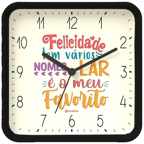 Cor do Mostrador: bege com inscrição Felicidade tem vários nomes Lar é o meu favorito e números em preto