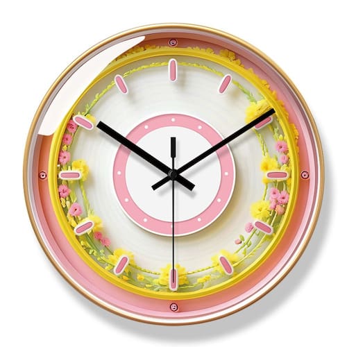 Material: Material da concha: plástico Material do espelho: vidro Material do mostrador: PVC Tamanho: 30 × 30 cm Peso: 1200 g Design floral criativo: com um padrão floral vibrante com flores rosa e amarelas, este relógio de parede adiciona um toque fresco e animado a qualquer ambiente, perfeito para decoração de primavera ou verão. Silencioso e sem tique-taque: desfrute de uma atmosfera tranquila com este relógio de quartzo que não liga, ideal para ambientes tranquilos, como quartos, salas de estar ou escritórios. Construção durável: feito com um mostrador de PVC, caixa externa de plástico e uma superfície espelhada de vidro, este relógio é resistente e fácil de manter. Números fáceis de ler: os números grandes e claros e os elegantes ponteiros pretos facilitam a leitura da hora de qualquer ângulo, garantindo praticidade e elegância. Perfeito para qualquer espaço: com 30 cm de diâmetro, este relógio se encaixa perfeitamente em qualquer ambiente, adicionando funcionalidade e um toque de cor à decoração de sua casa ou escritório.