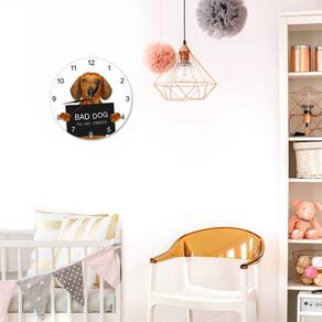 Material: Material da concha: plástico Material do espelho: plástico Material do mostrador: plástico Tamanho: 30 × 30 cm Peso: 400 g Design exclusivo com um cachorro segurando uma placa de “BAD DOG”, perfeito para amantes de animais de estimação e decoração humorística. O movimento silencioso e sem tique-taque garante um ambiente tranquilo em sua casa ou escritório. Feito com materiais plásticos duráveis para a caixa, espelho e mostrador, proporcionando um uso duradouro. Ideal para qualquer ambiente, incluindo sala de estar, cozinha ou escritório, adicionando um toque divertido ao seu espaço. Funciona com bateria (requer 1 bateria AA, não incluída), fácil de instalar e manter.