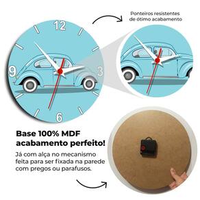 Relógio de Parede Fusca Azul Retro Vintage Decoração