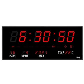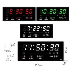 Relógio digital de parede, ideal para academias, comércios, empresas, centros esportivos, clubes dentre outros. Tenha aos seus olhos a marcação de hora, data, temperatura e dias da semana. Possui alarme integrado, você pode programa-lo para tocar em horários de almoço e café, entrada e saída de funcionários e muito mais. Possui 4 botões na parte traseira para programação do equipamento, memória embutida para em uma possível falha de energia, manter os dados. Material plástico com adaptador de operação 110- 220v ac - 5v 500mah