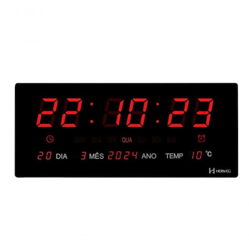 Relógio de parede Herweg digital preto 4605-034 Bivolt -