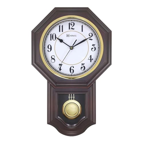 Tamanho: 29cm de largura X 45cm de altura X 7cm de espessura Maquinário: Step Tic-tac Cor do fundo: Branco Cor da Estrutura: Ipê Base: Plástico injetado/pintado Vidro: Cristal mineral Usa pilha AA Toque de hora cheia com melodia musical Sem toque de hora no período da noite Pêndulo