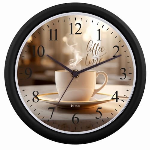 Relógio De Parede Herweg Ref: 6672-034 Preto Xícara DESCRIÇÃO DO PRODUTO: Medidas: 22D x 4E cm Características Técnicas: Usa pilha AA Mecanismo Step Tic-Tac Produto Nacional Informações sobre o produto: Relógio de parede Base em Plástico Injetado Botões de regulagem na parte traseira do produto Cor da Base: Preto Cor do Mostrador: com números e foto de uma xícara de porcelana branca de 1 ano Marca: Não Informado