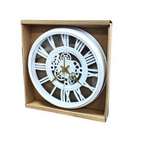 Relogio De Parede Industrial Rustico Estilo Madeira Design Vintage Romanos 30cm Decorativo Branco