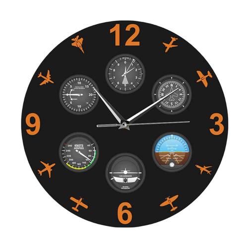 Material: Material da concha: plástico Material do espelho: plástico Material do mostrador: plástico Tamanho: 30 × 30 cm Peso: 400 g Design inspirado na aviação: com medidores de aviação e silhuetas de avião, este relógio de parede exclusivo traz a emoção de voar diretamente para sua casa ou escritório. Silencioso e sem tique-taque: equipado com um movimento silencioso de quartzo, este relógio garante um ambiente silencioso, tornando-o perfeito para quartos, escritórios ou salas com temas de aviação. Moderno e arrojado: o fundo preto com numerais laranja vibrantes e detalhes de instrumentos de voo confere a este relógio uma aparência dinâmica e moderna. Perfeito para amantes da aviação: este relógio é um ótimo complemento para entusiastas da aviação, pilotos ou qualquer pessoa apaixonada por aeronaves e história da aviação. Fácil instalação: funciona com bateria (bateria não incluída), facilitando pendurar e colocar em qualquer lugar sem se preocupar com fios ou cabos.
