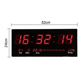 Relógio de parede ideal para sua casa, escritório ou qualquer outro ambiente, produto de aparência moderna e elegante. Ideal para consultórios, escritórios, academias, residências e comercio em geral. Números grandes de fácil visualização, fácil ajuste e Instalação, sistema eletrônico de quartz, não atrasa nem adianta, não perde a memória quanto acaba a energia. Fácil visualização à distância Só funciona ligado na tomada Características : Excelente Nitidez. Funciona no escuro. Tipo de Relógio: Parede / Estante Temperatura Hora Dia / Mês Calendário Dia da semana Especificações : Largura: 52 centímetro Altura: 24 centímetro Profundidade: 4 centímetro Bivolt 110 V / 220 V Peso Aproximado: 0,400kg Itens Inclusos : 01 - Relógio de Parede/Mesa/Instante 01 - Fonte 01 - Manual de instruções Em português Marca: Não Informado Ean: 7908044601067