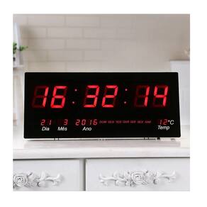 Relógio de parede ideal para sua casa, escritório ou qualquer outro ambiente, produto de aparência moderna e elegante. Ideal para consultórios, escritórios, academias, residências e comercio em geral. Números grandes de fácil visualização, fácil ajuste e Instalação, sistema eletrônico de quartz, não atrasa nem adianta, não perde a memória quanto acaba a energia. Fácil visualização à distância Só funciona ligado na tomada Características : Excelente Nitidez. Funciona no escuro. Tipo de Relógio: Parede / Estante Temperatura Hora Dia / Mês Calendário Dia da semana Especificações : Largura: 52 centímetro Altura: 24 centímetro Profundidade: 4 centímetro Bivolt 110 V / 220 V Peso Aproximado: 0,400kg Itens Inclusos : 01 - Relógio de Parede/Mesa/Instante 01 - Fonte 01 - Manual de instruções Em português Marca: Não Informado Ean: 7908044601067