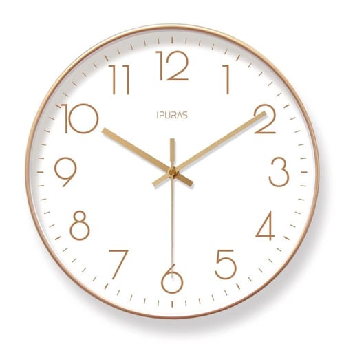 Material: Material da casca: plástico Material do espelho: vidro Material do mostrador: PVC Tamanho: 30 × 30 cm Peso: 0,98 kg incluindo embalagem Silencioso e não tique-taque: desfrute de um ambiente tranquilo e calmo com este relógio silencioso, perfeito para uso em quartos, escritórios ou salas de estar. Design elegante: apresenta um mostrador branco minimalista com elegantes ponteiros dourados das horas e minutos para uma aparência elegante e moderna. Números fáceis de ler: números pretos grandes e claros facilitam a leitura do tempo à distância, ideais para qualquer cômodo da sua casa. Mecanismo de quartzo durável: alimentado por um movimento de quartzo confiável, garantindo uma cronometragem precisa nos próximos anos. Leve e conveniente: este relógio de 12" é fácil de montar na parede e pesa apenas 0,98 kg (com embalagem), tornando-o perfeito para qualquer espaço.