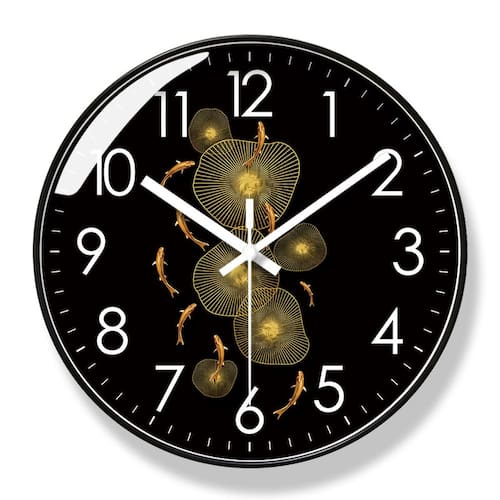 Material: Material da concha: plástico Material do espelho: vidro Material do mostrador: PVC Tamanho: 30 × 30 cm Peso: Peso da embalagem: 0,98 kg Design artístico exclusivo: apresenta um elegante padrão de peixe e flor com detalhes dourados em um fundo preto impressionante, oferecendo uma mistura de estilo moderno e natureza. Silencioso e sem tique-taque: o movimento de quartzo garante um ambiente silencioso e pacífico, tornando-o perfeito para quartos, escritórios ou salas de estudo. Números fáceis de ler: números claros e em negrito em branco facilitam a leitura do relógio à distância. Decoração de casa versátil: ideal para aprimorar a decoração de salas de estar, quartos, escritórios ou cozinhas com sua estética contemporânea. Construção durável: Feito com materiais de PVC e vidro de alta qualidade, este relógio é elegante e durável para um desempenho duradouro.