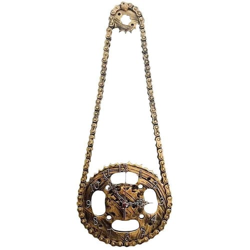 Relógio de parede com corrente e coroa de moto (originais) decorativo em aço de alta qualidade e durabilidade é super indicado para decorar ou redecorar com muita criatividade e estilo. Decore o seu bar, sua casa, cozinha, salas em geral, áreas gourmets, sacadas, área da churrasqueira e muito mais. Tenha este belíssimo relógio de aço cromado em alto-relevo decorativo e não perca mais tempo e/ou a hora de reunir amigos e familiares para partilhar momentos únicos e incríveis ao seu lado. Deixe seu cantinho do churrasco, área gourmet, cozinha, salas e sacadas com um clima agradável, alegre e descontraído, sendo também uma ótima opção de presente.