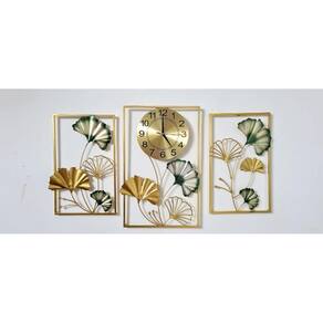 Muito elegante, arte em 3 peças, com detalhes de folhas dourada e verde. Simétrico, criativo e chique.