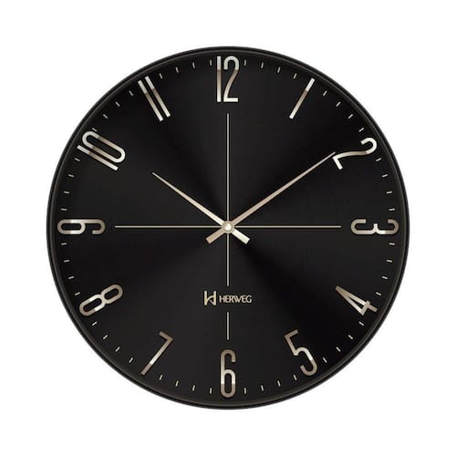 Relógio de Parede Preto Brilhante Herweg 4607-035 único -