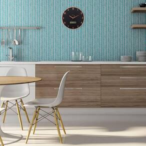 Relógio de parede preto e rosé termômetro herweg 6819-309Estilo modernoBase em plástico metalizadoVisor de vidroCalendário em inglêsDetalhe do mostrador em alto relevoMecanismo sweep contínuo Termômetro com duas escalasProduto nacionalUsa pilha aa não inclusas Medidas:Diâmetro de 34,6 cmEspessura de 5 cmAcompanhaManualCertificado de garantia herweg de 12 meses