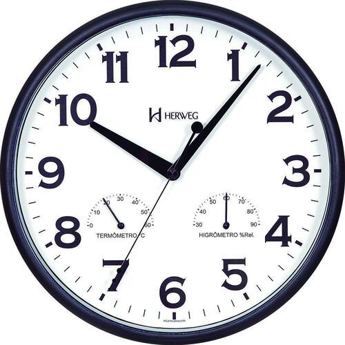 Relógio De Parede Preto Temperatura Umidade Herweg 660072 26cm Relógio De Parede Preto Temperatura Umidade Herweg 660072 26cm - Relógio De Parede Preto Temperatura Umidade Herweg 660072 26cm Relógio de Parede - 660072-034 Estilo: Tradicional Medidas: 26 D, 4E cm Características Técnicas: Usa pilha AA Produto Nacional Mecanismo Step Indica temperatura e umidade do ar.