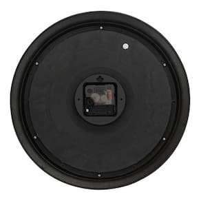 Relógio de parede na cor preta com enfeite em forma de utensílios de cozinha e fundo enfeitado com imagem de um ovo. Relógio com 34 x 33 cm de dimensão. Ponteiros para horas, minutos e segundos. Numeração arábica. Estilo criativo. Material: plástico; Funcionamento: 1 pilha AA