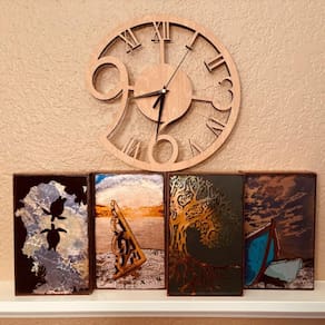 Material: Material da concha: madeira Material do espelho: Nenhum Material do mostrador: madeira Tamanho: 30 × 30 cm Peso: 320 g Design de geometria sagrada: apresenta um design intrincado da Árvore da Vida com elementos de geometria sagrada, tornando-a uma adição única e espiritual à decoração de sua casa. Silencioso e sem tique-taque: desfrute de uma atmosfera pacífica com este relógio de parede silencioso, perfeito para espaços de meditação, quartos ou salas de estar. Materiais de alta qualidade: feitos com plástico durável para a moldura, o espelho e o mostrador, fornecendo um relógio leve, porém resistente, de fácil manutenção. Fácil de instalar: funciona com bateria (requer 1 bateria AA, não incluída), é simples de pendurar e não requer fiação. Decoração de casa versátil: ideal para aprimorar qualquer espaço, da sala de estar ao escritório, com uma mistura de estilo moderno e simbolismo natural.