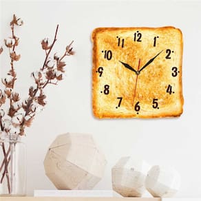 Material: Material da concha: plástico Material do espelho: plástico Material do mostrador: plástico Tamanho: 12 polegadas Peso: 400 g Forma divertida da torrada: um design exclusivo e divertido que apresenta uma fatia de torrada, perfeito para amantes da comida e entusiastas da cozinha. Silencioso e sem tique-taque: aproveite a operação pacífica e silenciosa deste relógio de quartzo sem tique-taque, ideal para sua casa, cozinha ou padaria. Construção em plástico durável: feita com plástico de alta qualidade para o mostrador e a caixa do relógio, garantindo um uso duradouro. Números grandes e fáceis de ler: números em negrito no mostrador em forma de torrada para leitura rápida e clara à distância. Decoração de cozinha versátil: um complemento perfeito para cozinhas, cafés, padarias ou restaurantes, adicionando um toque divertido e elegante ao seu espaço.