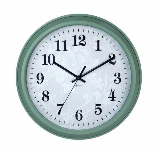 Relógio de Parede Verde Sálvia Herweg 660142 único - Características Gerais do Produto: Alimentação: Pilha AA não inclusa Funcionalidade: Mecanismo Sweep Ponteiro de segundos contínuo ; Detalhe do mostrador em alto relevo Material: Plástico injetado pintado Medidas: A: 37 x L: 37 x P: 4cm Observações: Inclui suporte para pendurar; Botões de regulagem na parte traseira Modelo referência do produto: 660142-346 Acompanha o produto: 01 Relógio de 12 meses do Fabricante Manual de Instruções : 12 Meses de de Fábrica Marca: Não Informado