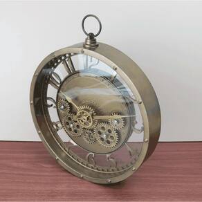 RELÓGIO DE PAREDE VINTAGE ENGRENAGENS VISÍVEIS E COR ENVELHECIDA 26,7CM - FJ90510-DOU