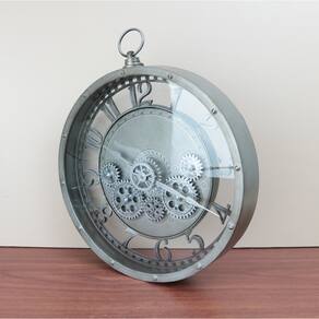 O design imponente, somado ao visual mecânico das engrenagens, faz do relógio um destaque na parede, funcionando tanto como objeto decorativo quanto como ponto central da composição do espaço.