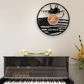 Material: Material da concha: metal Material do espelho: metal Material do mostrador: PVC Tamanho: 30 × 30 cm Peso: 2000 g Design da Força Aérea dos EUA: apresenta um impressionante design de caça a jato e bandeira americana, ideal para entusiastas militares e da aviação. Silencioso e sem tique-taque: opera silenciosamente com um mecanismo antitique-taque, perfeito para quartos, escritórios ou espaços com temas militares. Materiais duráveis: feitos de metal e PVC de alta qualidade, garantindo um design robusto e duradouro com um acabamento elegante e retrô. Tamanho perfeito: mede 30x30cm, oferecendo uma aparência ousada e distinta, ao mesmo tempo que se encaixa perfeitamente em qualquer ambiente. Ótimo para decoração militar: um relógio exclusivo e criativo que celebra a Força Aérea, tornando-o uma excelente adição a qualquer coleção militar ou sala com tema de aviação.