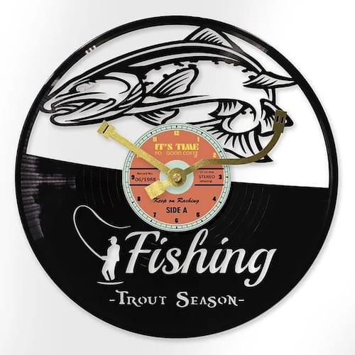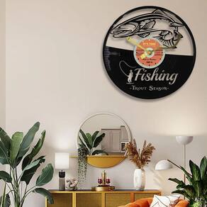 Material: Material da concha: metal Material do espelho: metal Material do mostrador: PVC Tamanho: 30 × 30 cm Peso: 2.000 g Design inspirado na pesca: apresenta um design detalhado de truta, peixe e pescador, combinado com um visual retrô de disco LP, perfeito para entusiastas da pesca e amantes da natureza. Silencioso e sem tique-taque: desfrute de um ambiente silencioso com este relógio de parede silencioso e sem tique-taque, ideal para cabines, residências ou escritórios sem a distração dos sons de tique-taque. Durável e elegante: feito de materiais duráveis de metal e PVC, este relógio oferece uma adição robusta e elegante à sua decoração, combinando um toque vintage com funções modernas. Perfeito para temas ao ar livre e da natureza: um ótimo complemento para qualquer chalé de pesca, cabana ou espaço temático ao ar livre, trazendo a essência do ar livre para sua casa. Compacto e fácil de ler: mede 30 x 30 cm, com números claros e fáceis de ler para um relógio prático e decorativo que se encaixa perfeitamente em qualquer ambiente.