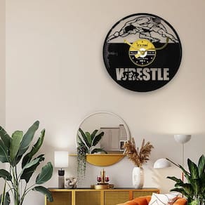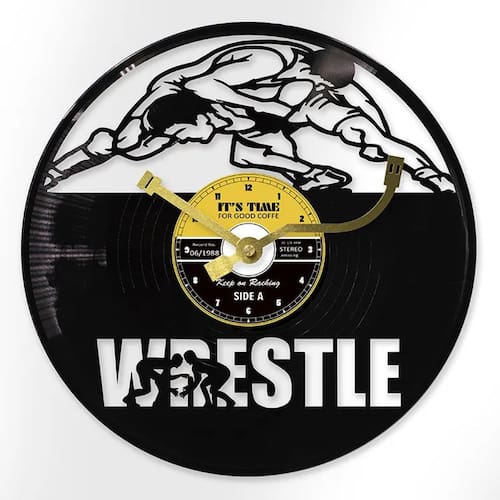 Material: Material da concha: metal Material do espelho: metal Material do mostrador: PVC Tamanho: 30 × 30 cm Peso: 2000 g Design exclusivo com tema de luta livre com silhuetas dinâmicas de lutador, feito de um disco de vinil para um visual atlético e retrô. O movimento antiaderente de quartzo garante uma operação silenciosa, perfeita para entusiastas do esporte que apreciam ambientes silenciosos. A estrutura metálica de alta qualidade com um mostrador de PVC oferece durabilidade e um acabamento elegante para a decoração de sua parede. Um complemento perfeito para salas de esportes, academias ou qualquer espaço dedicado à luta livre ou à paixão atlética. Fácil de instalar, operado por bateria (AA) e tem um tamanho de 30 cm, ideal para vários espaços de parede, de casa a escritórios.