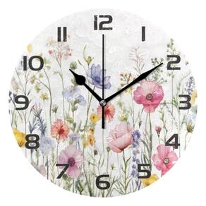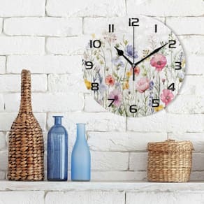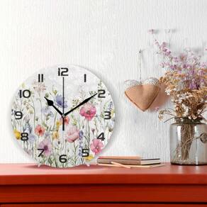 Este relógio de parede decorativo combina a função de marcação do tempo com o apelo artístico da textura de pintura a óleo impressa em uma placa resistente de PVC. Com 25 cm de diâmetro, apresenta formato redondo e um design vibrante de flores silvestres que traz um toque fresco e colorido a qualquer ambiente. Os números pretos nítidos e os ponteiros de metal garantem fácil leitura à distância, tornando-o prático e visualmente atraente.