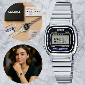 O Casio LA670WA-1DF é o acessório ideal para quem valoriza estilo retrô com praticidade. Seu design compacto e acabamento prateado combinam com qualquer look, do casual ao urbano. Leve e confortável, possui pulseira ajustável em aço inoxidável e caixa cromada em resina. O visor digital entrega funções essenciais como cronômetro, alarme diário e calendário automático. Perfeito para o dia a dia, oferece resistência à água de 3 ATM, ideal para pequenas exposições à umidade. Um clássico vintage que nunca sai de moda.