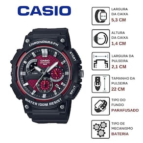 Relógio de Pulso Casio Masculino Analógico Cronógrafo Prova Dágua 100 Metros Calendário Robusto Esportivo Preto MCW-200H-4AVDF - Preto - MCW-200H-4AVDF