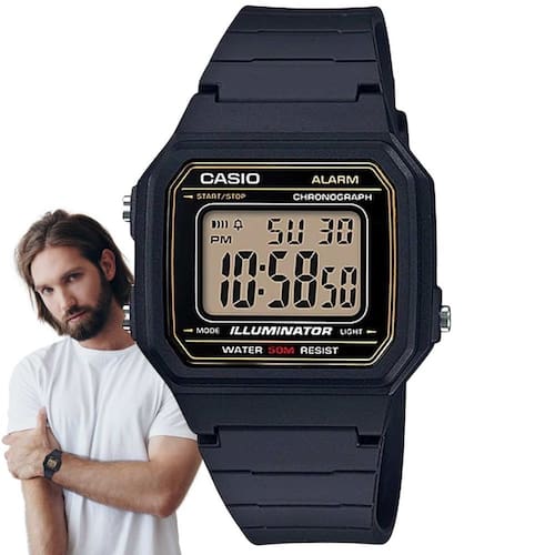 O Casio W-217H-9AVDF é a escolha ideal para quem busca estilo retrô com funcionalidade moderna. Seu visual clássico em preto, aliado ao visor digital de alta legibilidade, torna este modelo prático e estiloso para o dia a dia. A iluminação LED laranja facilita a leitura em ambientes escuros, enquanto o cronômetro de 1/100s e alarme diário garantem funcionalidade. Confortável no pulso e resistente à água até 50 metros, é perfeito para acompanhar sua rotina com leveza, praticidade e personalidade.