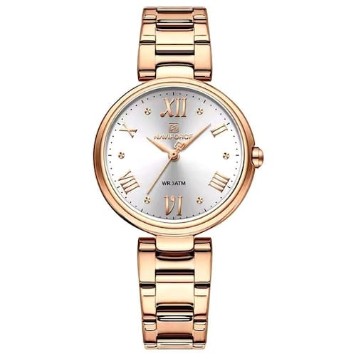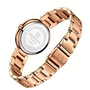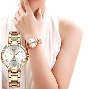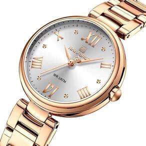Este elegante relógio de quartzo apresenta um design minimalista que combina estilo e funcionalidade. Com seu formato distinto, o mostrador é realçado por um acabamento suave, ideal para mulheres que apreciam um toque de sofisticação em sua rotina diária.