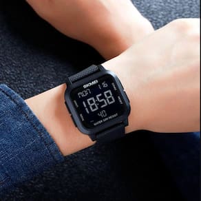 Descrição detalhada: Marca: skmei Modelo: 1894 Gênero: unissex Categoria: digital Especificações: possui luz de fundo, cronômetro, alarme, calendário, fuso horário múltiplo, formatos de 12/24 horas, contagem regressiva. Resistente à água 5 atm. Pulseira de pu com fecho de fivela. Relógio disponível em estoque. Garantia: 90 dias, garantia do vendedor.
