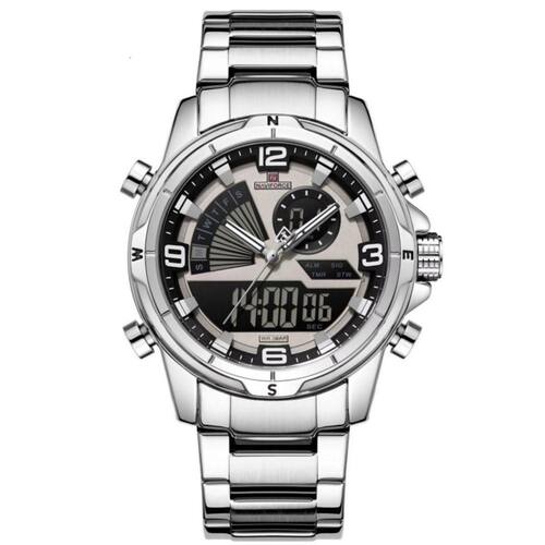 [Tecnologia Dual] Combinando a precisão do movimento digital com a clássica leitura analógica, este relógio oferece o melhor de dois mundos, perfeito para quem busca eficiência e estilo em um só lugar. [Conforto e Durabilidade] A pulseira feita de aço inoxidável não só garante durabilidade excepcional, mas também proporciona um ajuste confortável ao longo do dia com seu sofisticado fecho de bracelete. [Versatilidade no Design] O design fashion e casual deste relógio permite uma transição suave entre o escritório e atividades ao ar livre, combinando com diversos estilos sem esforço. [Resistência à Água] Com uma profundidade de resistência à água de até 3 Bar, aventure-se por chuva e umidade sem preocupações, enquanto seu visor Hardlex oferece proteção contra impactos. [Estilo Moderno] Equipado com um diâmetro de visor de 44mm e um impressionante estojo de liga, este item de moda é a escolha ideal para quem busca afirmar sua personalidade com sofisticação.