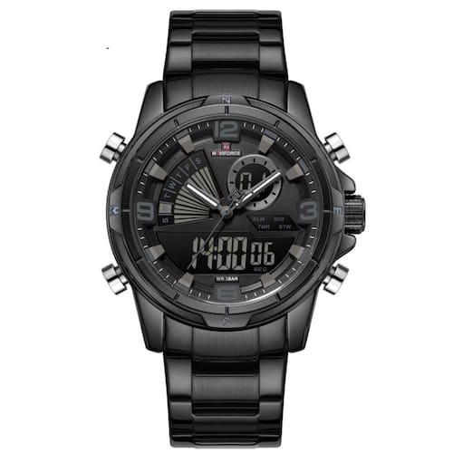 Com um mostrador iluminado por tecnologia avançada, você nunca ficará no escuro, enquanto sua resistência à água de até 3 Bar oferece a tranquilidade de enfrentar qualquer condição climática. A pulseira de aço inoxidável proporciona durabilidade incomparável, tornando este relógio não só um símbolo de estilo, mas também um aliado confiável em todas as suas aventuras diárias.